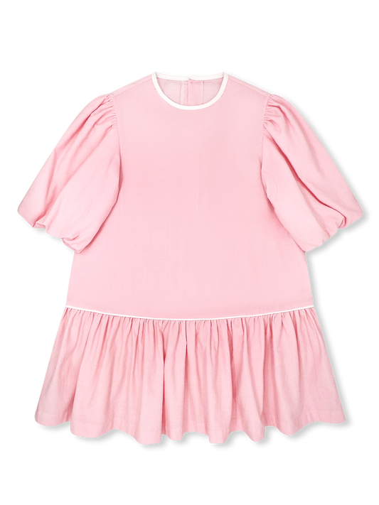 Harper Dress - PRESCOTT PINK CORDUROY WITH WHITE CORDUROY PIPING