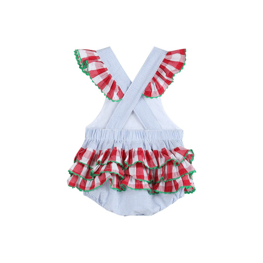Light Blue Seersucker and Gingham Watermelon Ruffle Romper