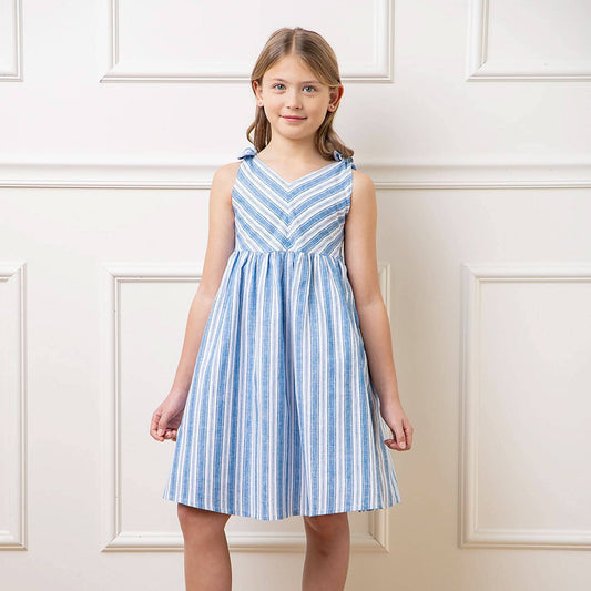 Classic Light Blue Seersucker Collared Baby Bubble Romper