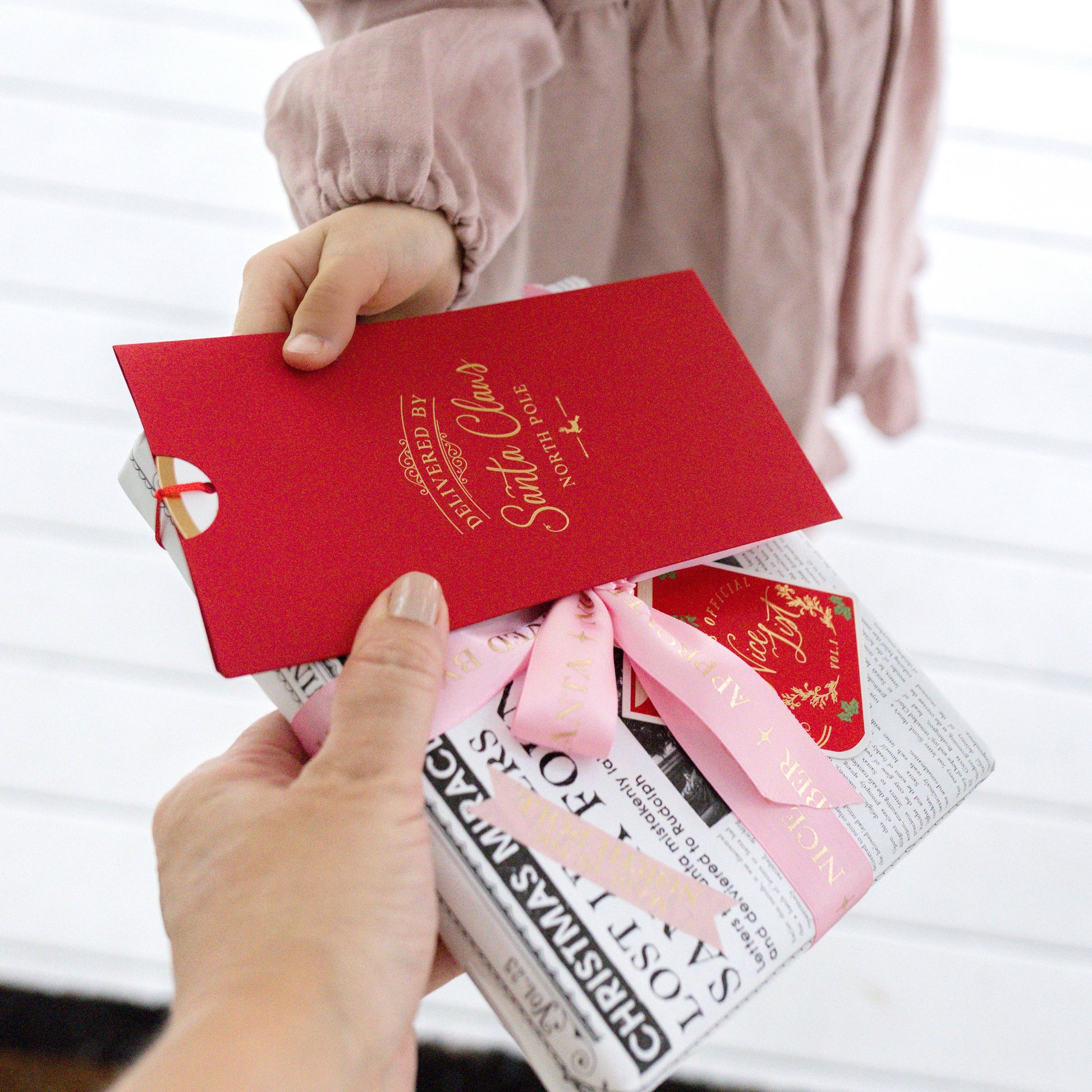 This official Santa's Sleigh Delivery Receipt gift tag with a matching envelope is an enchanting keepsake, certifying that your gift was personally hand-delivered straight from the North Pole by Santa Claus himself.