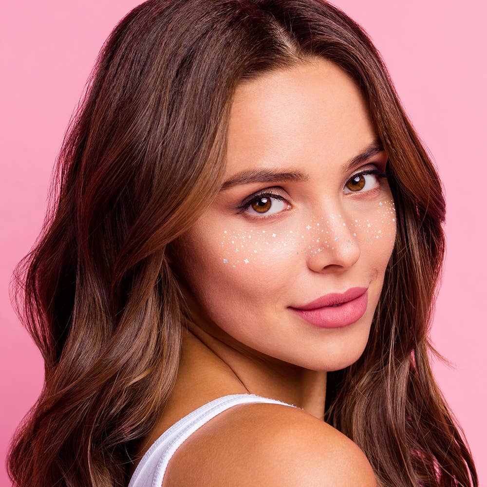 These Flash Tattoos® are ready to party! Celebrate in style with the “GALACTIC SILVER FACE FRECKLES” party tat set, featuring a metallic silver dot and star freckle design that’s perfect for concerts, festivals and everyday wear.