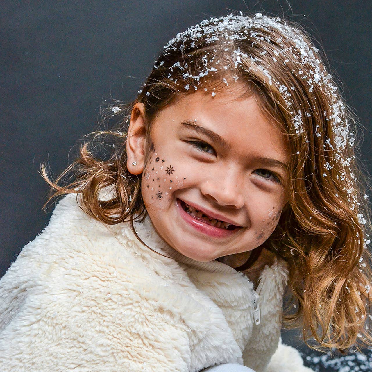These Flash Tattoos® are ready to party! Celebrate in style with the “SNOWFLAKE EYE JEWEL” party tat set perfect for holiday parties, New Year celebrations, birthdays, school events, costumes and everyday fun.