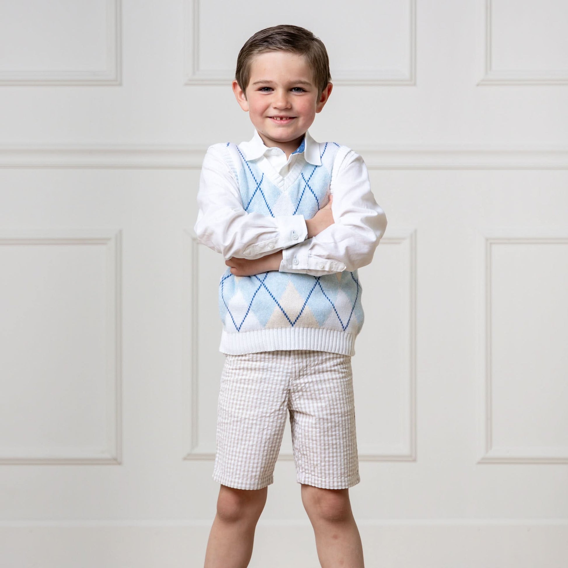 Hope and Henry - Organic Seersucker Short Taupe Gingham