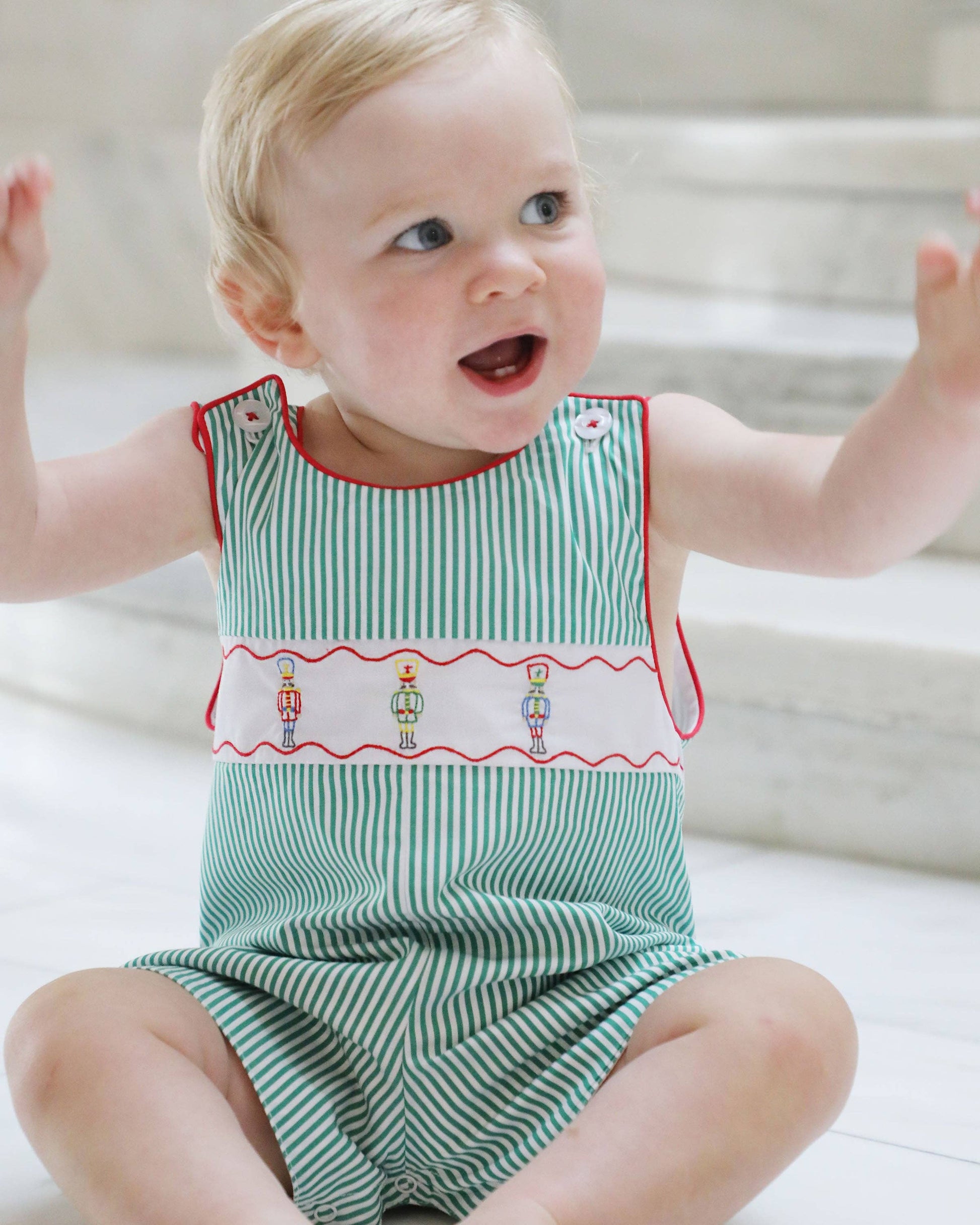 Dress your little one in the Jean Jon Jon - Christmas jumpsuit from The Yellow Lamb. Ideal for festive occasions, this piece captures our ethos of 'everyday heirloom.' It's designed for ease of care, perfect for busy parents who don't want to compromise on style. Childhood is fleeting, so let them wear great clothes while they can! With classic designs for the modern child, our jumpsuits are as practical as they are charming. Snap a picture, they grow up so fast!